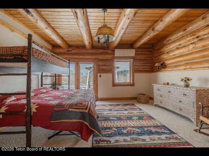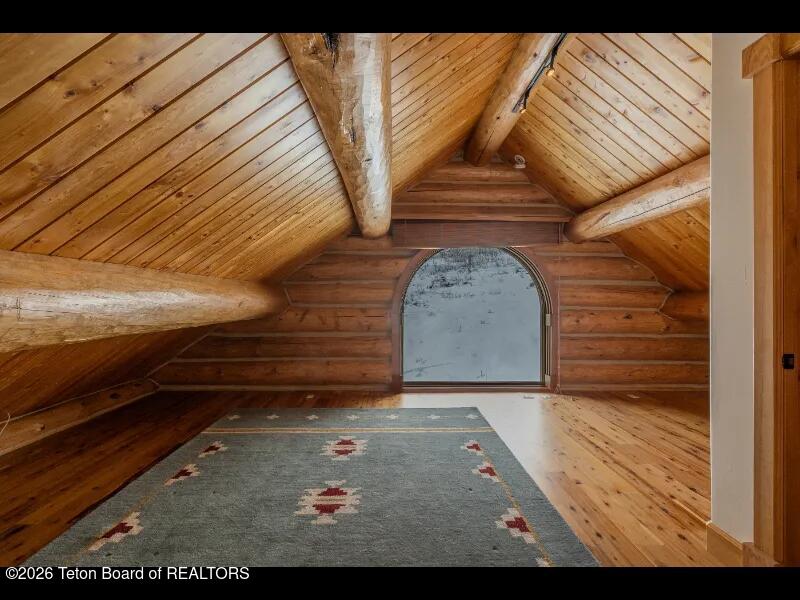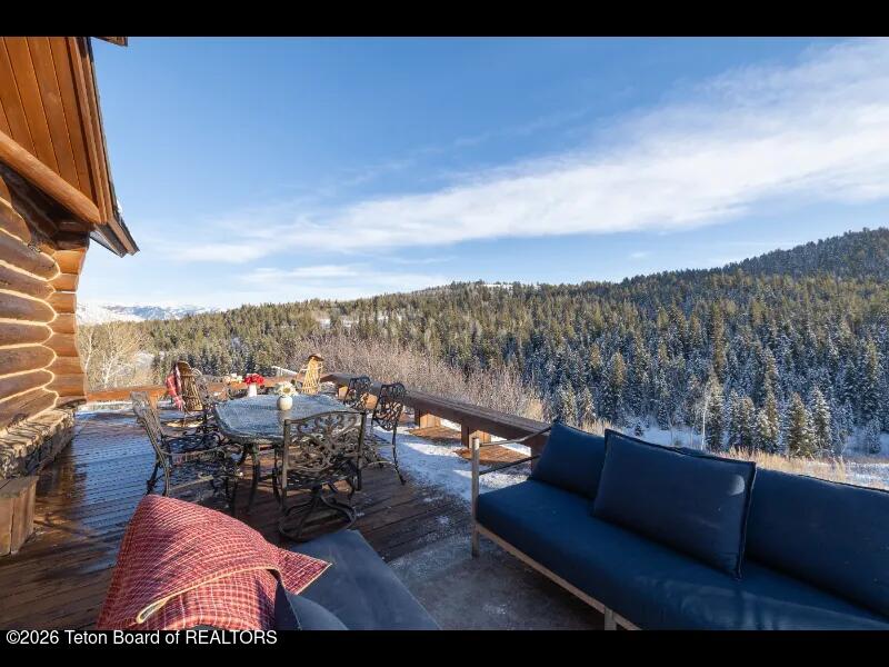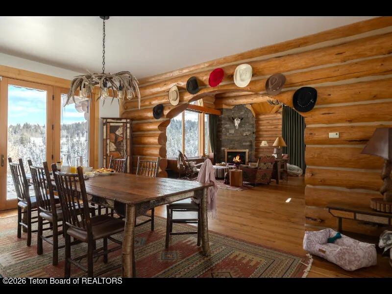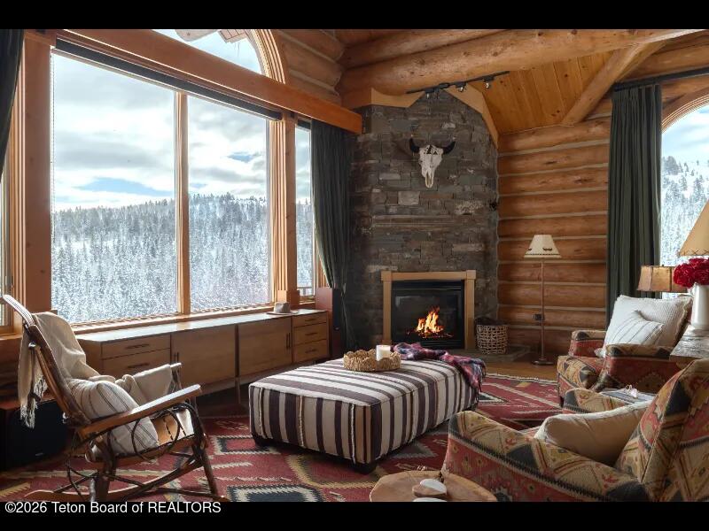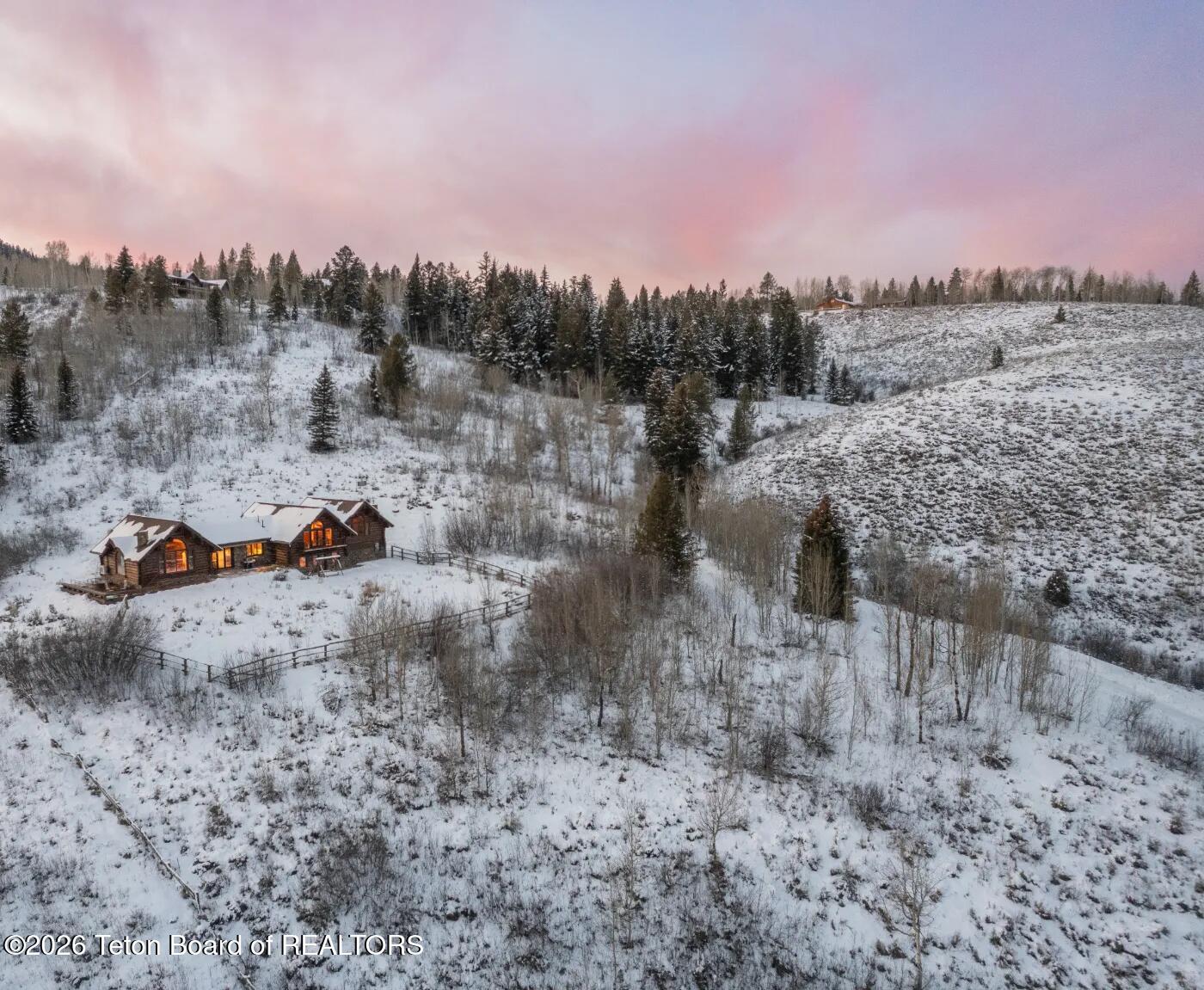 Set on 7.94 private acres in the rural Hidden Hills neighborhood, this classic Jackson Hole log home enjoys a lovely setting with elevated views, sagebrush meadows dotted with wildflowers, aspen groves and willows that welcome Jackson's amazing wildlife. Bordering National Forest, the property offers outdoor enthusiasts easy access to untouched snow for backcountry skiing or quiet trails for hiking. The 3,900 sf home offers 2 bedrooms & 3 bathrooms. Two bonus rooms may be used for additional sleeping space or a variety of other functions: office, recreational room, art studio, gym, etc. Enjoy in-floor radiant heat & ac, vaulted ceilings, a gas fireplace & a screen & projector for movie night. Other highlights include a pantry, laundry room & sauna. Located just 20 min. from Wilson
