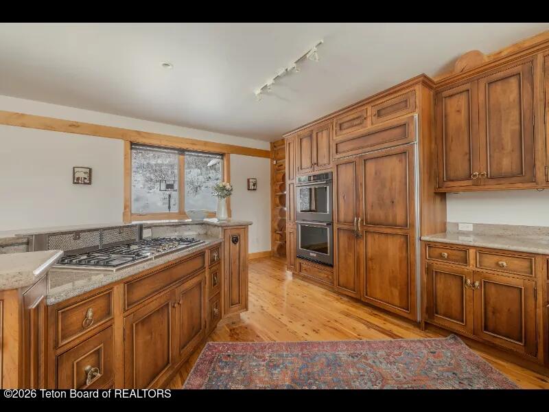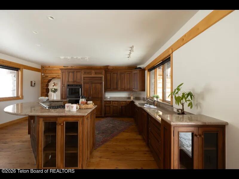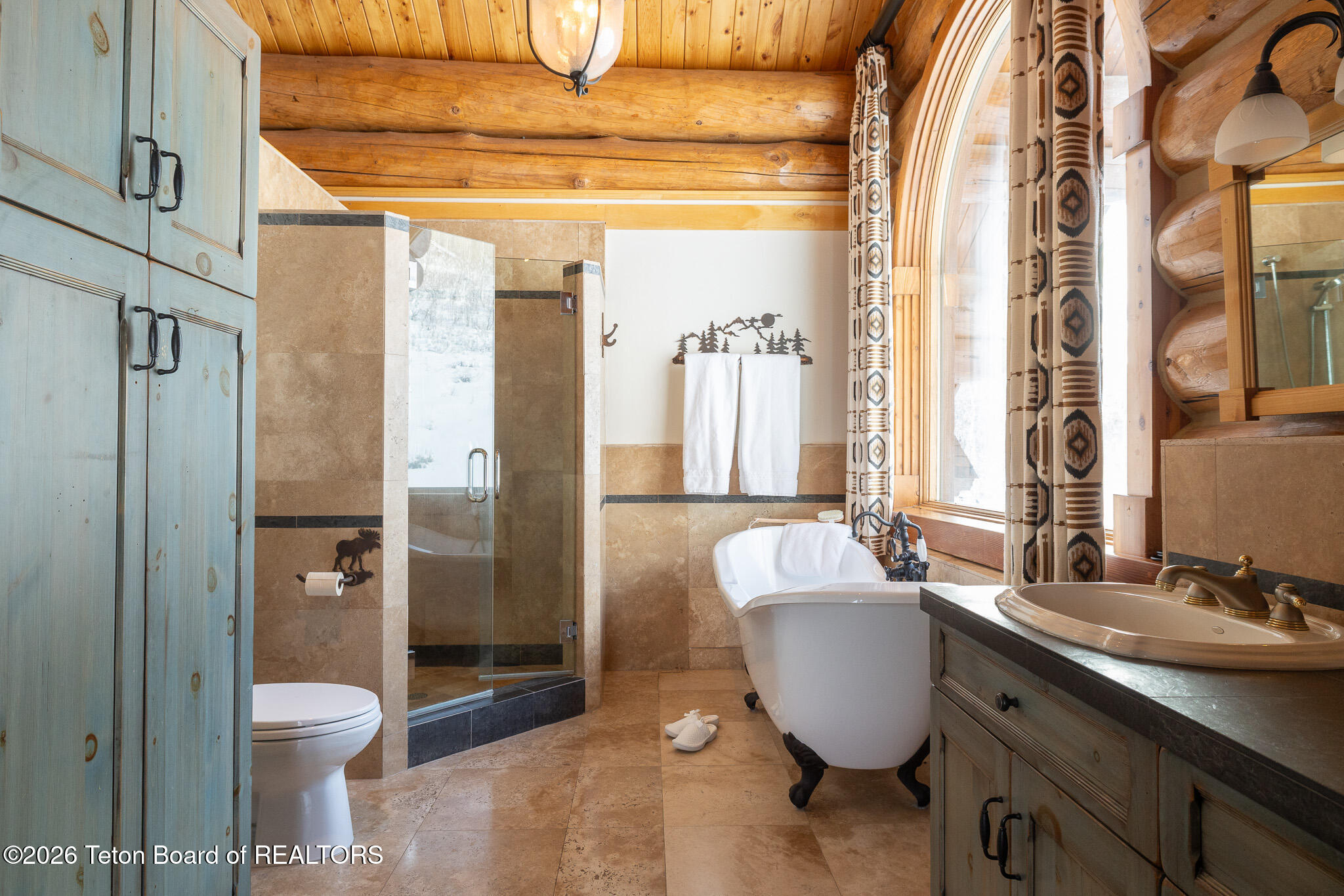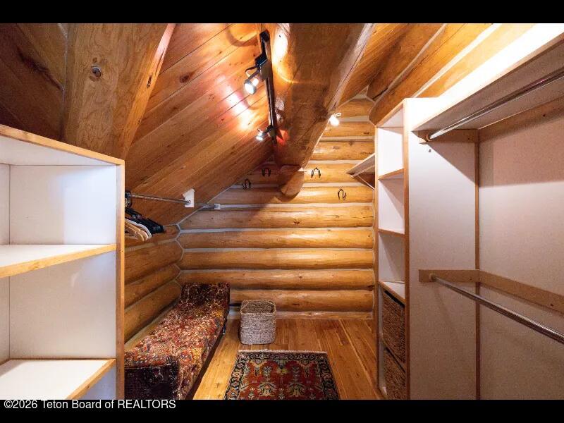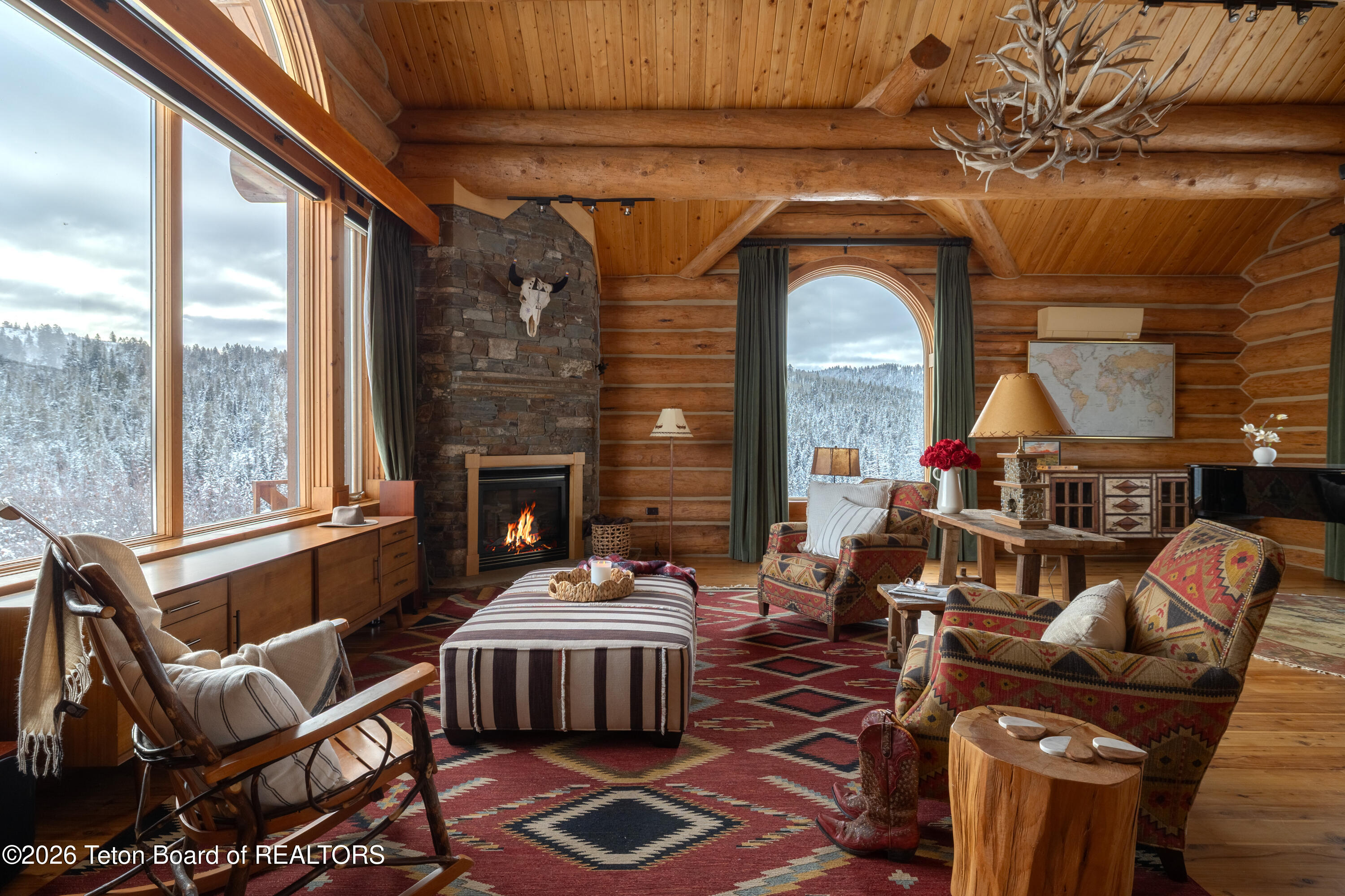 Set on 7.94 private acres in the rural Hidden Hills neighborhood, this classic Jackson Hole log home enjoys a lovely setting with elevated views, sagebrush meadows dotted with wildflowers, aspen groves and willows that welcome Jackson's amazing wildlife. Bordering National Forest, the property offers outdoor enthusiasts easy access to untouched snow for backcountry skiing or quiet trails for hiking. The 3,900 sf home offers 2 bedrooms & 3 bathrooms. Two bonus rooms may be used for additional sleeping space or a variety of other functions: office, recreational room, art studio, gym, etc. Enjoy in-floor radiant heat & ac, vaulted ceilings, a gas fireplace & a screen & projector for movie night. Other highlights include a pantry, laundry room & sauna. Located just 20 min. from Wilson