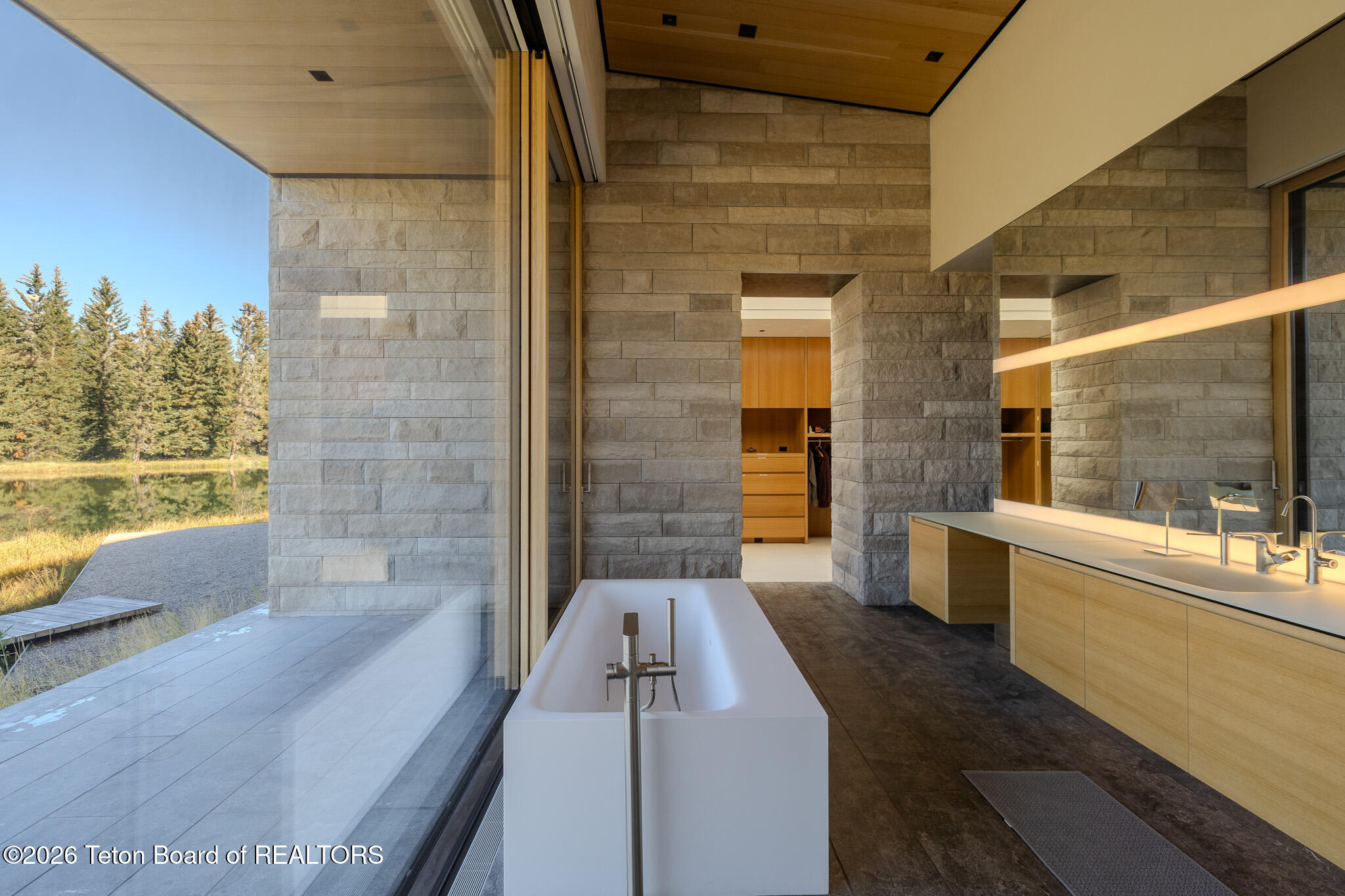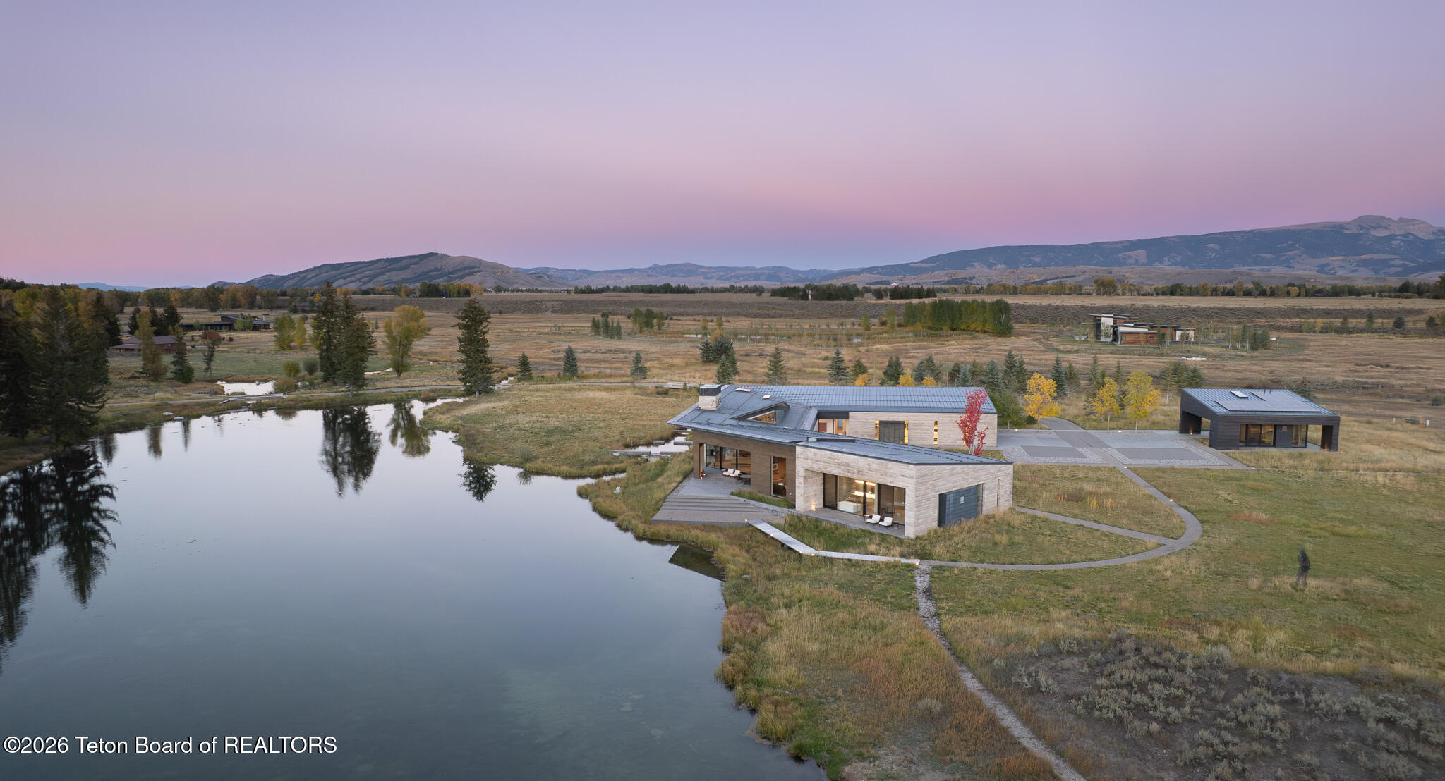 Set in the exquisite Bar B Bar Ranch, this 36-acre horse-friendly property boasts magnificent Grand Teton & Sleeping Indian views, live water & wonderful privacy. The quaint homestead cabin, a horse barn & 2 loafing sheds add western flair & historic charm. Designed by CLB Architects, the 7,587 sf custom home showcases state-of-the art finishes & systems in a low profile, minimalistic design including Case optical glass windows, geothermal heating & cooling, solar energy and snow melt systems. Featuring a unique design separating ''back-of-house'' functions from formal living spaces, the home is ideally suited to lifestyle with live-in staff. Other highlights include:1,172 sf garage, and a 830 sf, 1 br, 1 ba guest house. Discover the peaceful beauty of this exceptional Bar B Bar Ranch oasi